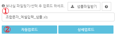 1번을 클릭해서 편집한 엑셀파일을 불러와 2번의 업로드 버튼을 클릭합니다.