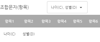 조합문자일 경우 열을 선택 하면 선택한 것이 어느 항목에 들어갔는지 표를 통해 알 수 있습니다.